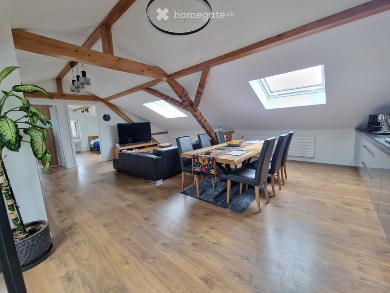 Gemütliche und moderne 3.5 Zimmer Dachwohnung an guter Lage in Langenthal zu vermieten. Sichtbalken, viel Tageslicht und eine grosszügige Küche sorgen für ein angenehmes Wohngefühl.