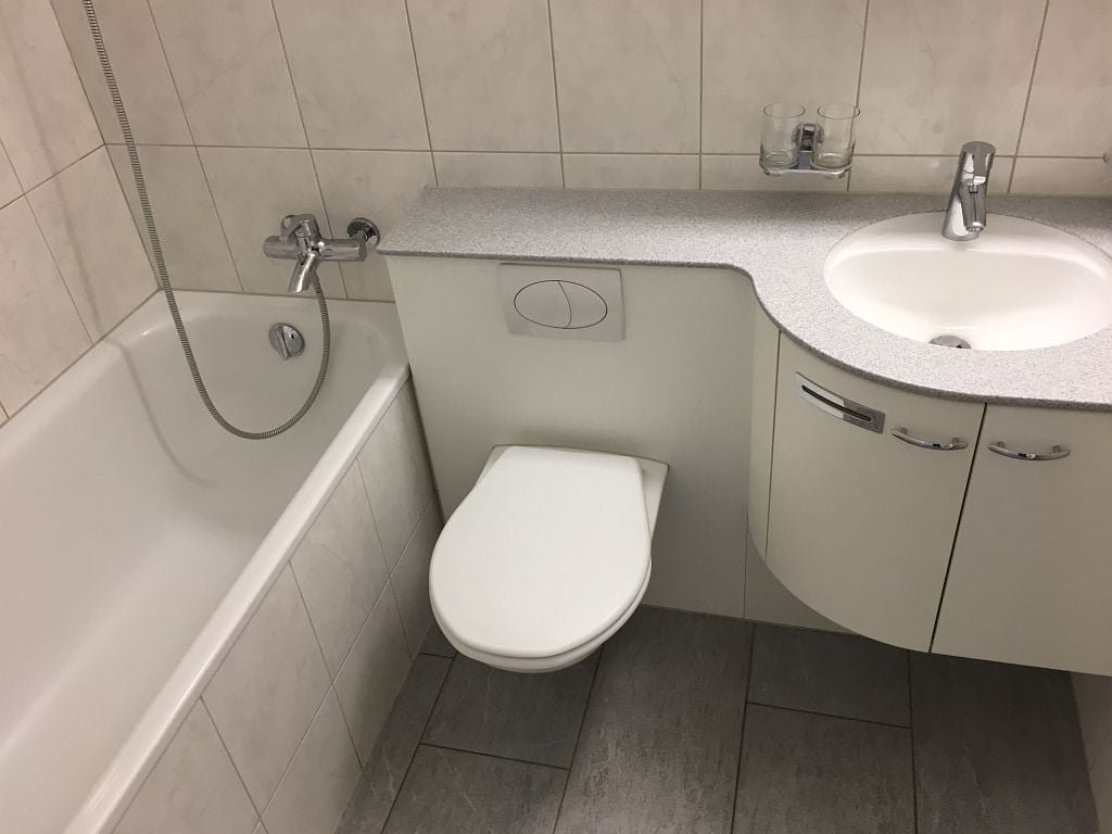 Die Küche sowie das Bad bieten zeitgemässen Komfort. In der Wohnung sind Platten- und Laminatböden verlegt. Ein Balkon sowie ein Kellerabteil ist vorhanden. Ein Parkplatz kann dazu gemietet werden.