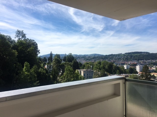 Der nach Süd-West ausgerichtete Balkon eröffnet eine wunderschöne Aussicht über die Stadt und lädt dazu ein, die Sonne in entspannter Atmosphäre zu geniessen.