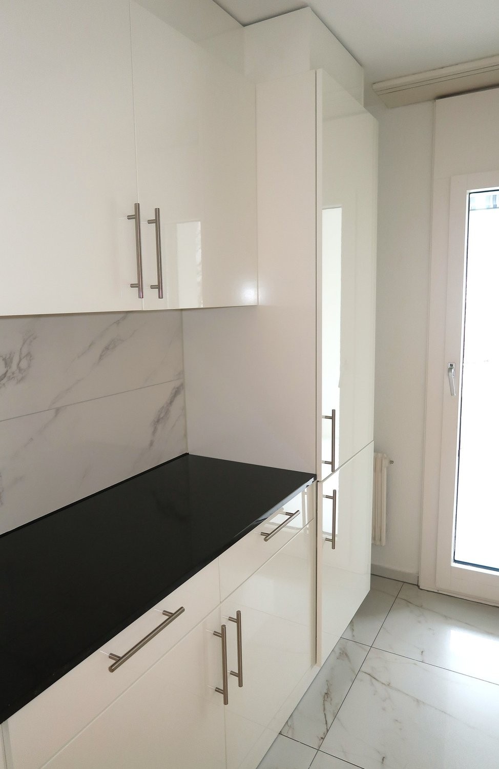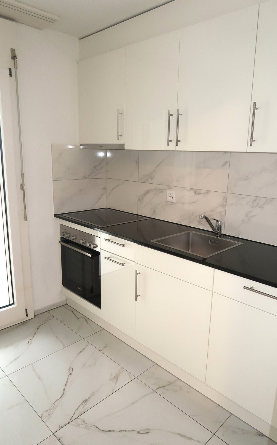 - moderne Küche mit Glaskeramikkochfeld, Granitsteinabdeckung, Geschirrspüler sowie mit grossem Kühlschrank/Tiefkühler (Küche mit Balkonausgang)