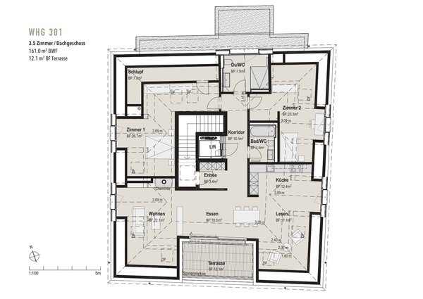 - Zwei Nasszellen 1x DU/WC und 1x Bad/WC