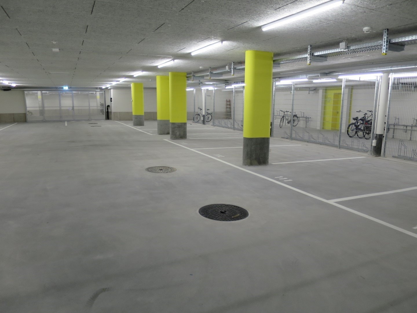 - Jeder Einstellhallenplatz verfügt über eine eigene Steckdose.