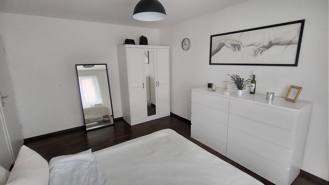 Furniture to be taken over: sofa, tables, chairs, kitchen sideboard, dressers, wardrobe, storage in the entrance, bed frame and bedside tables.
