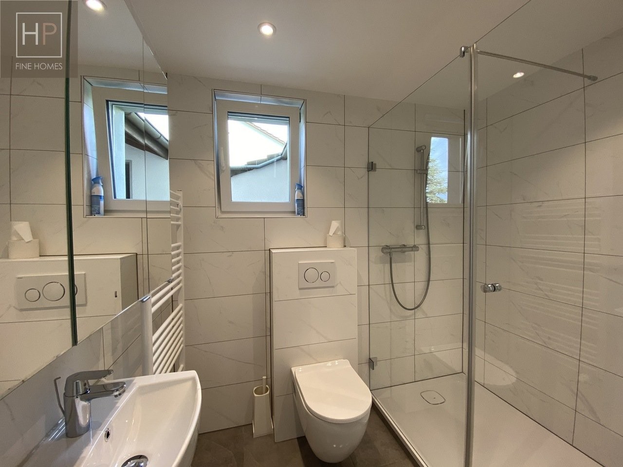 Im ersten Obergeschoss befinden sich vier Schlafzimmer, die durch zwei Balkone zusätzlich Licht und Luft in die Räume lassen. Das Familienbad mit Badewanne und Dusche sowie ein separates WC sorgen für Komfort und Funktionalität.