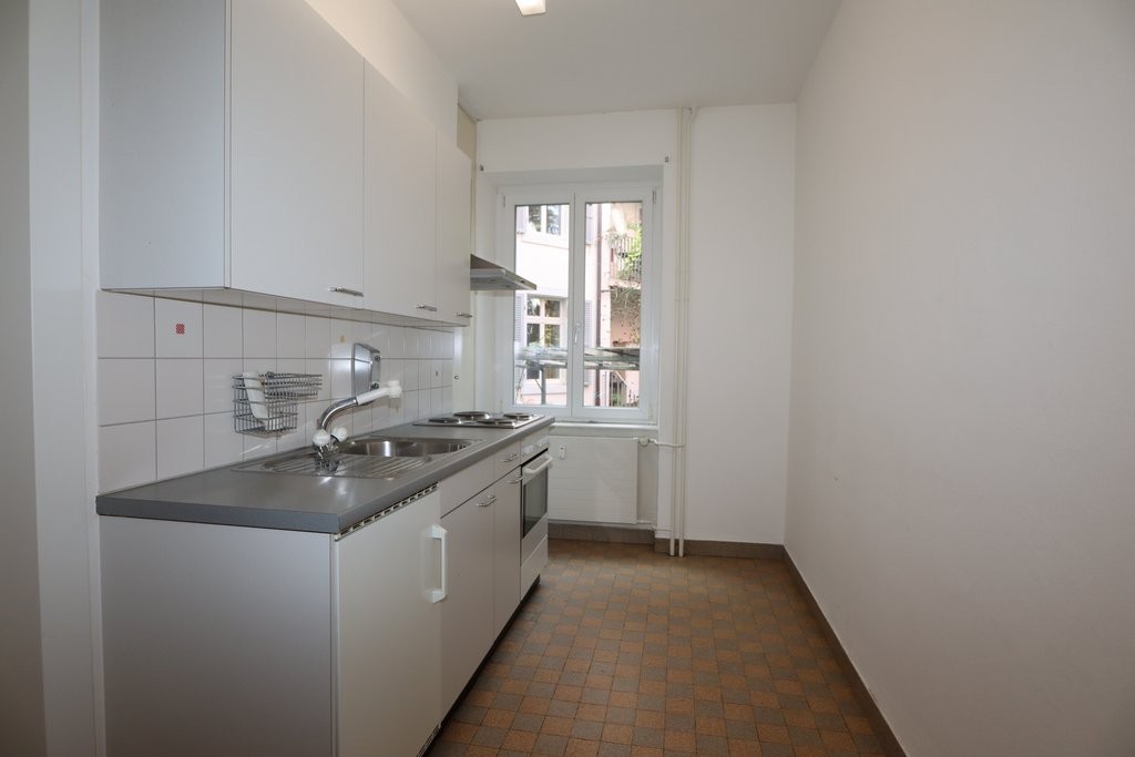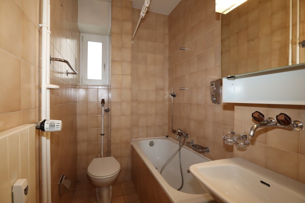 Die Küche mit Dampfabzug bietet genügend Stauraum sowie eine grosse Ablagefläche. Das mit einem Fenster ausgestatteten Badezimmer verfügt über eine geräumige Badewanne..