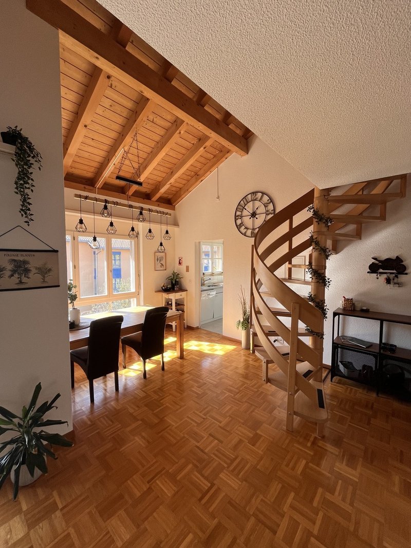 Ich suche ab Juni / Juli 2026 oder nach Vereinbarung einen Mitbewohner:in in einer grossen 3 1/2 Z (105m2) schönen Gallerie Wohnung in Belp. Dein Zimmer hat entweder 13 m2 oder wenn du lieber das grosse Zimmer haben möchtest 17 m2, ist hell und hat einen direkten Balkonzugang. Die Wohnung hat einen weiteren grossen Balkon mit Sicht auf die Berge, zwei Bäder, einen grossen Wohnraum, eine offene Küche und das Highlight eine Wendeltreppe zum Wohnzimmer. Der Bahnhof ist zu Fuss in 4-5 min erreichbar, sowie div. Einkaufsmöglichkeiten. Ausserdem verfügt die Wohnung über einen eigenen Wäscheraum inkl. Trockner un einen zusätzlichen Keller.