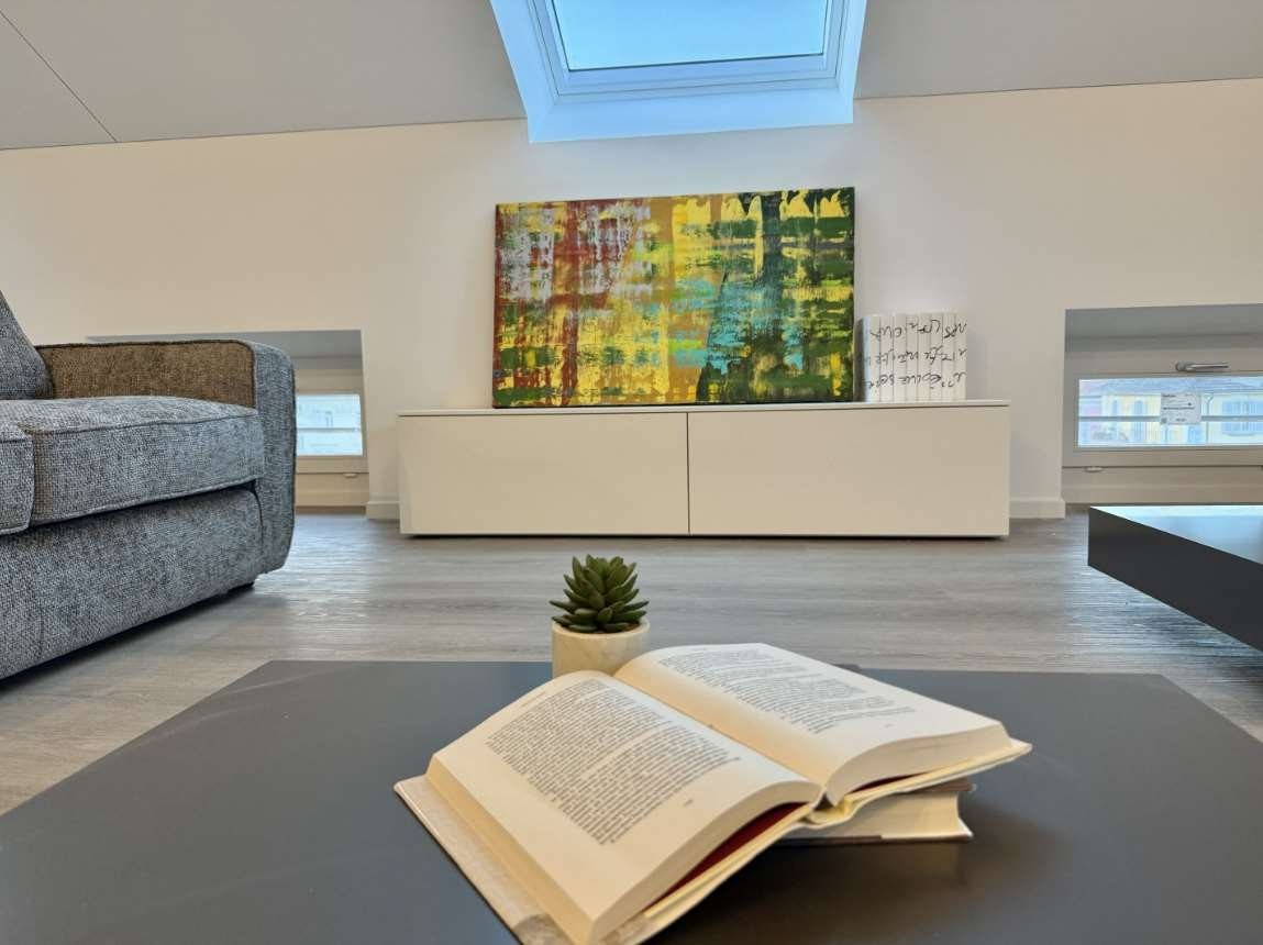 In affitto, appartamento attico di 3.5 locali mansardato su tutto il piano, ammobiliato con gusto. Dimora di pregio in pieno centro città nel tranquillo quartiere residenziale di San Giovanni. Edificio storico ristrutturato completamente nel 2025, lappartamento è dotato di grande cucina, tanti armadi a muro, lavasciuga. La disposizione degli spazi interni garantisce un ambiente comodo e ben organizzato. Dai velux e finestre a pavimento, vista aperta e meravigliosa sui tre castelli di Bellinzona, patrimonio dell'UNESCO, e le montagne circostanti. Ascensore al mezzo piano. Animali non ammessi. Caratteristiche dellappartamento: