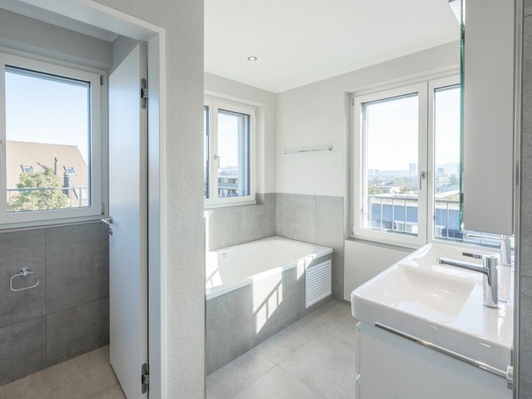 Whirl-Badewanne, Regenwalddusche, eigene Waschmaschine/Tumbler sind nur einzelne Attribute, die dieses Bijou auszeichnen. Von den fünf Balkonen geniesst man eine einmalige Weitsicht über die Stadt und zum Uetliberg.