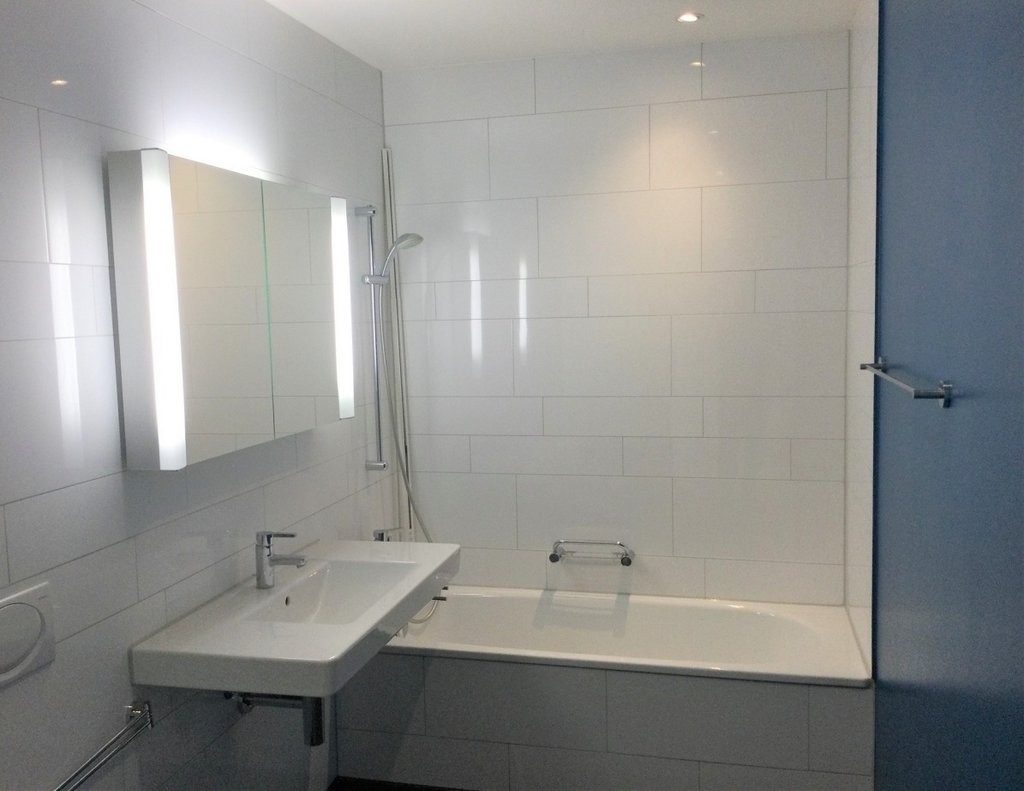- Bad / WC mit eigenem Waschturm (Waschmaschine / Tumbler), Deckenspots und neuem Plattenboden - Wohnen, Essen, Eingang, Korridor, Reduit und Schlafzimmer mit neuem Parkettboden