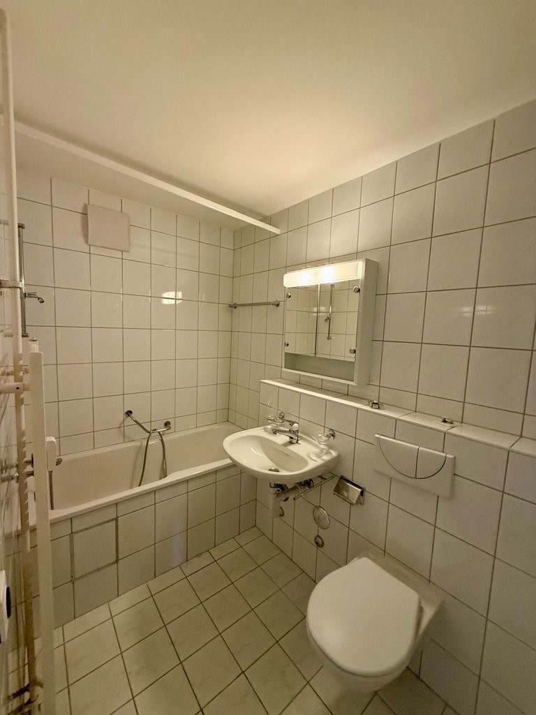 - Badezimmer mit WC, Lavabo, Spiegelschrank und Badewanne