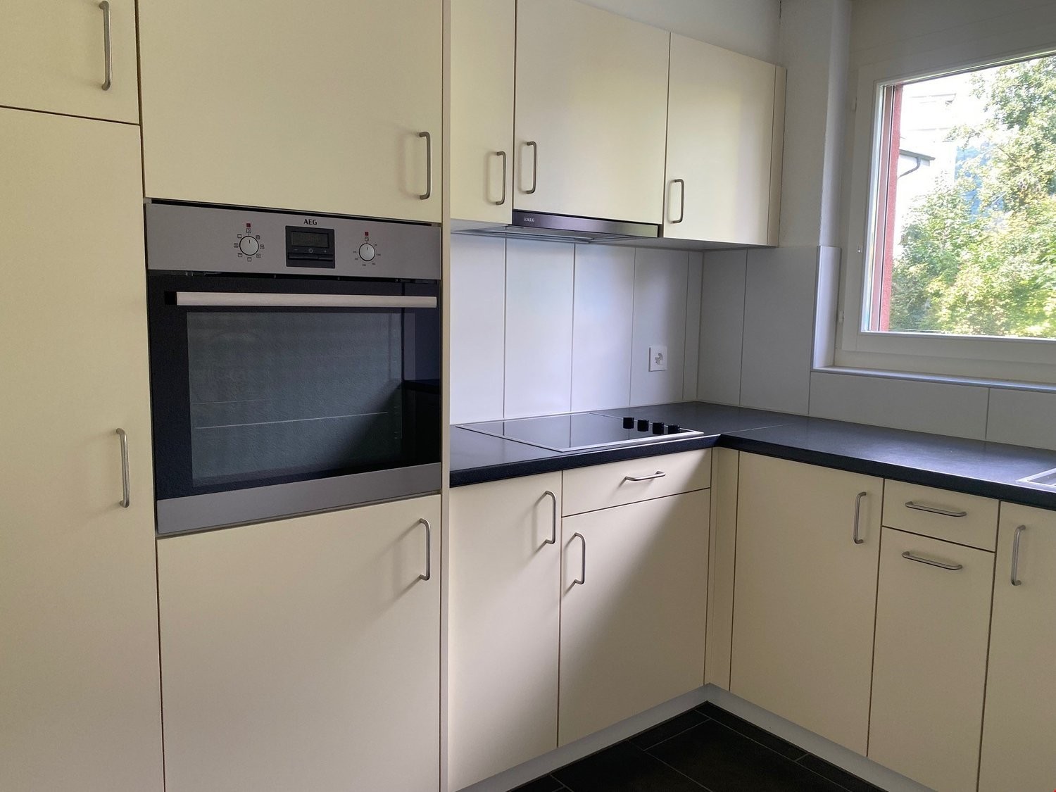 Sie interessieren sich für eine renovierte Wohnung in der Nähe des Bahnhofs und Stadtzentrums ? Wir vermieten per sofort eine grosszügige 4 1/2- Zimmerwohnung im 2. Stock Die Wohnung verfügt über: - ca. 100m2 - ein grosses Wohnzimmer - Parkettböden in Wohn- und Schlafzimmern - Plattenböden in Nassräumen - geschlossene Küche mit neuem GS/GK und Kühlschrank - Bad/Wc und Dusche und sep. WC - Garderobe/Einbauschränke Einstellhallenplätze können dazu gemietet werden. Öffentliche Verkehrsmittel, Einkaufs- und Vergnügungsmöglichkeiten sind in unmittelbarer Nähe.