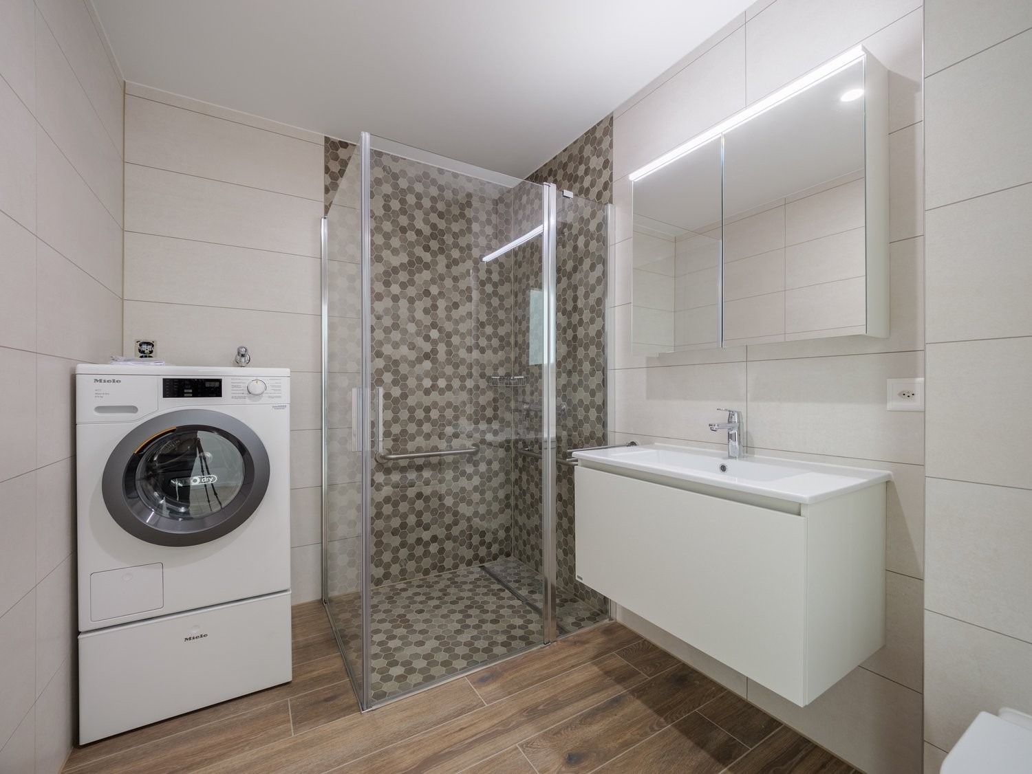 Il bénéficie également d?une salle de bains équipée d'une douche, d'un WC et d'une colonne de lavage.