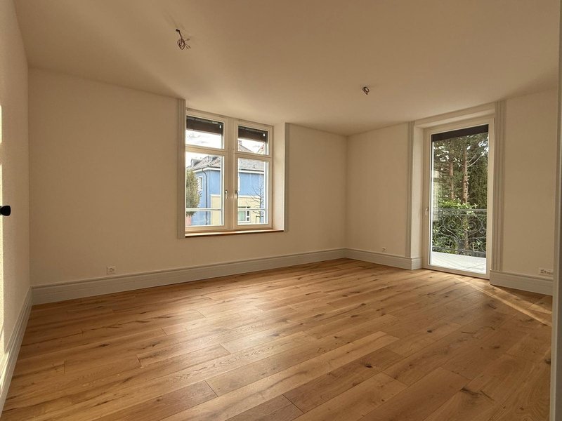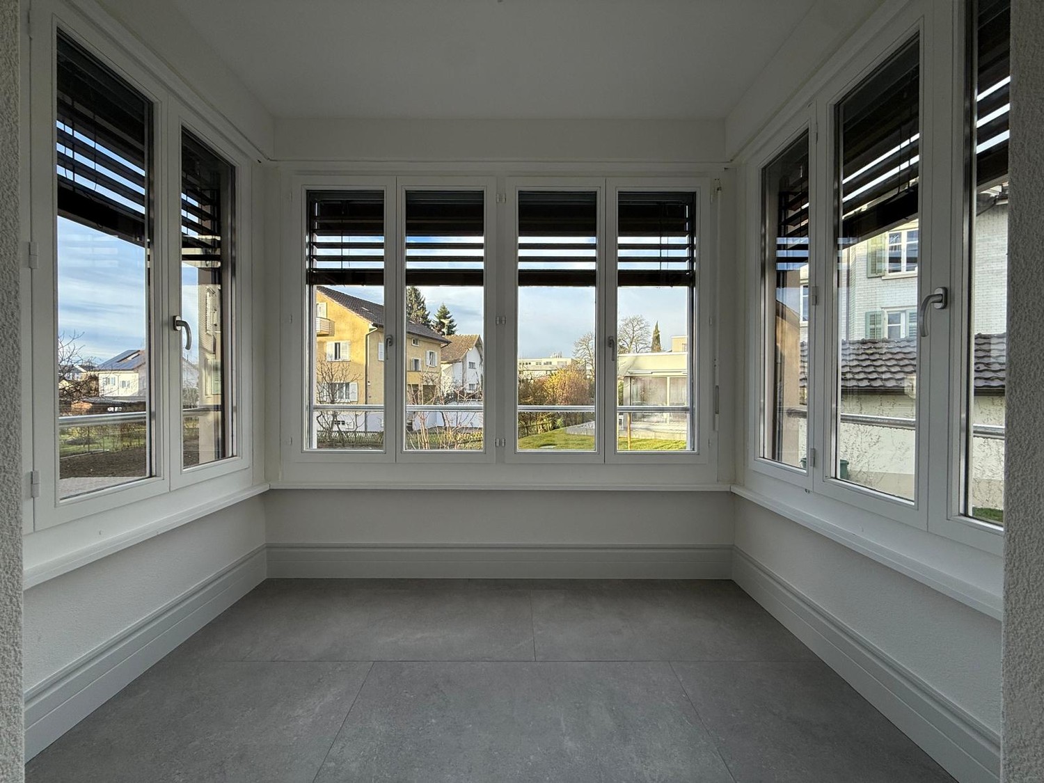 Der grosszügige Wohnbereich mit edlem Eichenparkett und viel Tageslicht schafft eine warme, stilvolle Atmosphäre. Der Wintergarten erweitert den Wohnraum und wird schnell zum Lieblingsplatz – perfekt als Essbereich, Home-Office oder Rückzugsort.