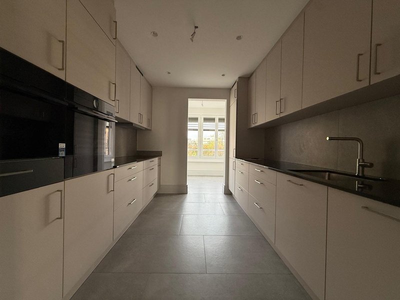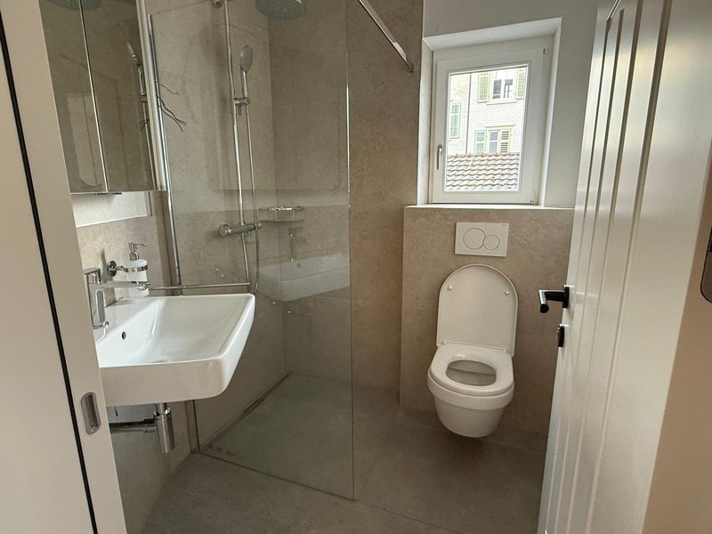 Die moderne Küche überzeugt durch klare Linien und hochwertige Ausstattung. Zwei geschmackvoll renovierte Badezimmer sowie ein eigener Waschturm innerhalb der Wohnung sorgen für zusätzlichen Komfort.