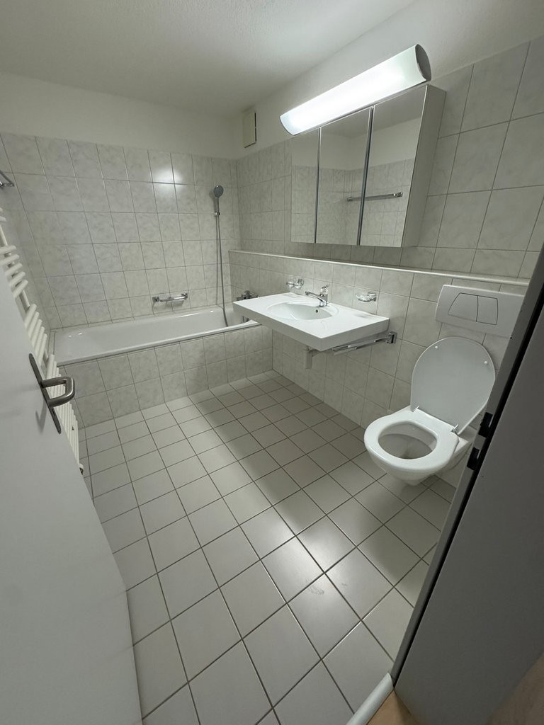 - Badezimmer mit WC, Lavabo, Spiegelschrank und Badewanne