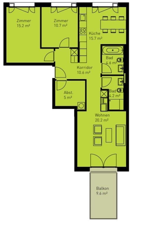 - Parkett- und Plattenboden - Offene Küche mit Essecke - Badezimmer mit Badewanne - Dusche/WC - Waschmaschine + Tumbler in Wohnung - Grosser Abstellraum - Kellerabteil - Moderner Balkon - Einkaufsmöglichkeiten (Coop + Denner) im Haus - Idyllischer Innenhof mit Kinderspielplatz