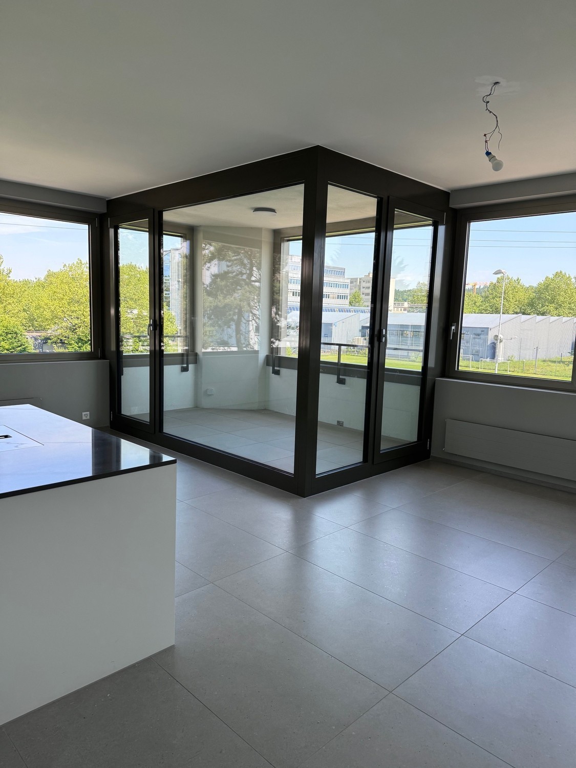 Das Gebäude ist ein umgebautes Bürogebäude und bietet eine großartige Lage (EKZ, mehrere Haltestellen der öffentlichen Verkehrsmittel und alle besten Radwege sind zu Fuß erreichbar und Sie können in 30 Minuten zu Fuß oder 10 Minuten mit dem Fahrrad oder Auto zum Seeufer gelangen).
