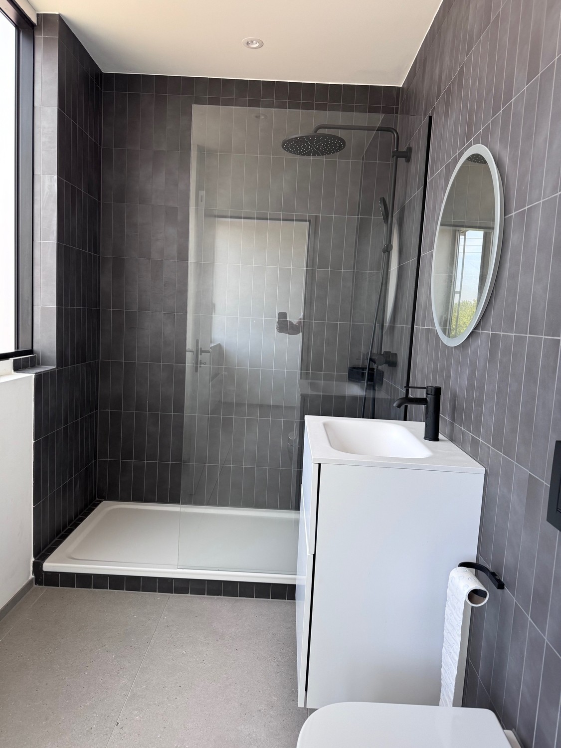 - 3.5 rooms, 2 bathrooms (one with walk-in shower, one with bathtub),