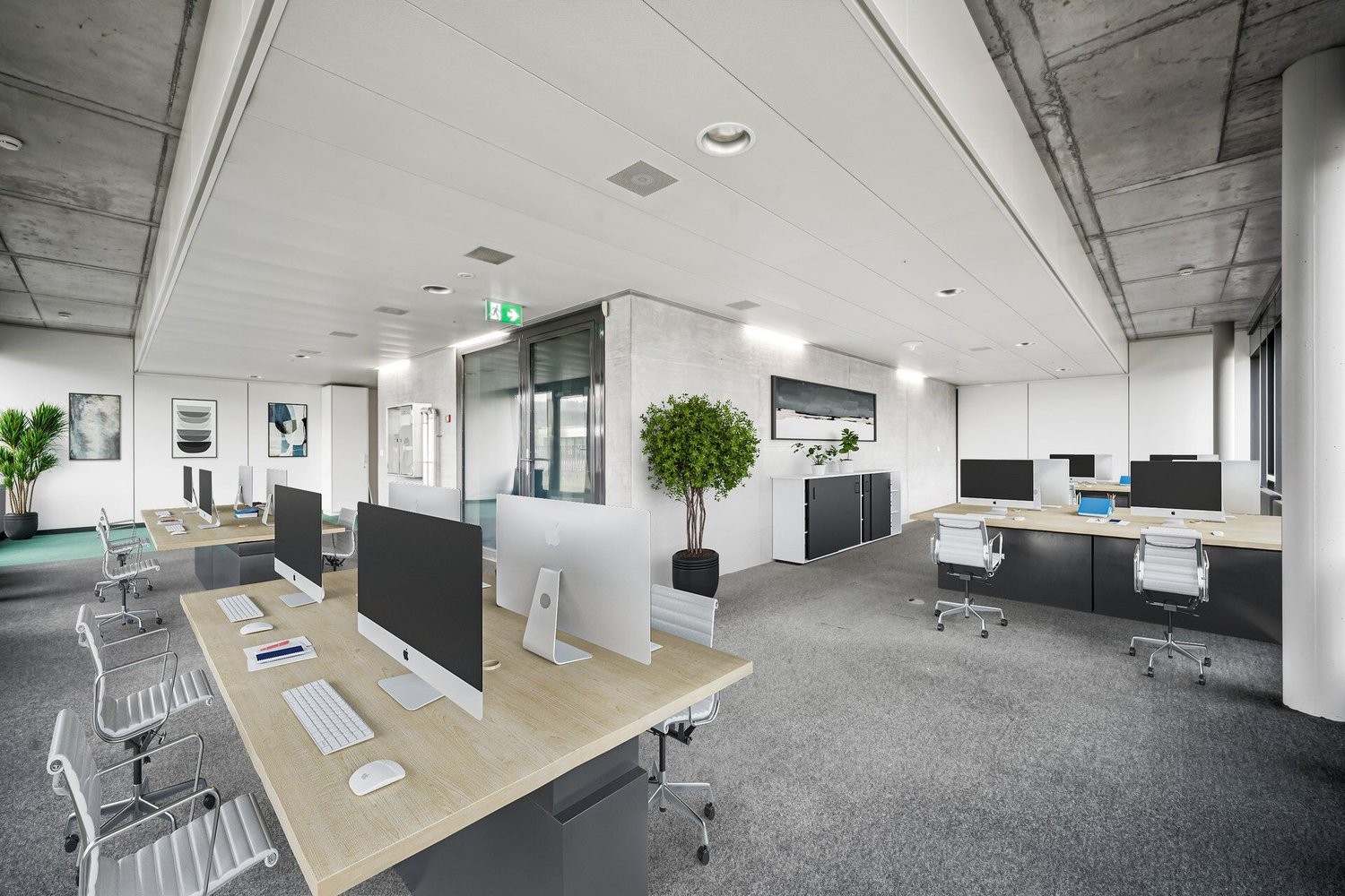 Mehrere Einzel- und Teambüros durchdacht aufgeteilt