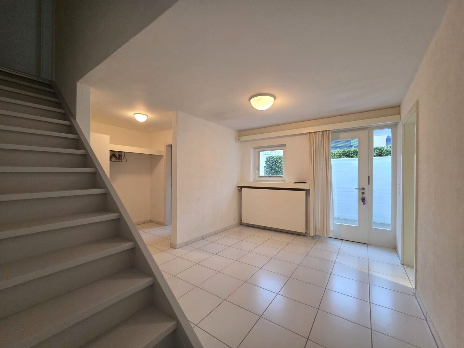 Gedeckter Zugangsbereich, gefolgt vom grosszügigen Eingangsbereich mit Einbaugarderobe