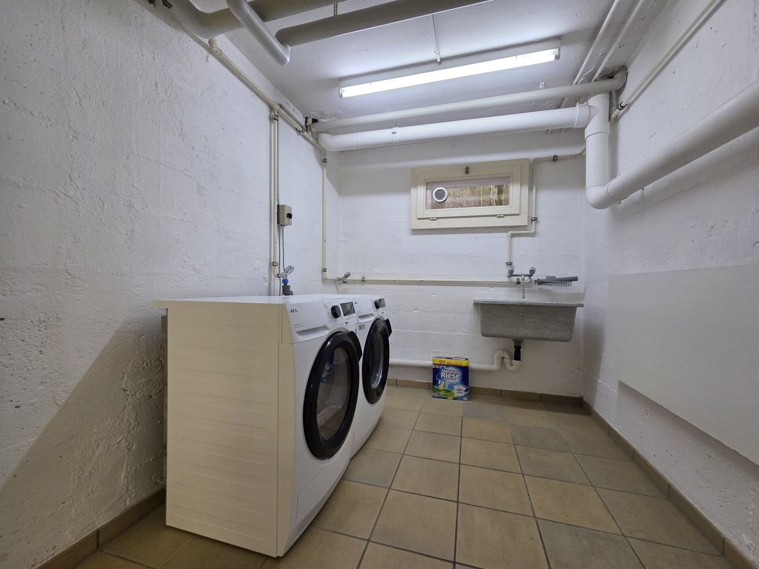 Waschküche mit Waschmaschine und Trockner