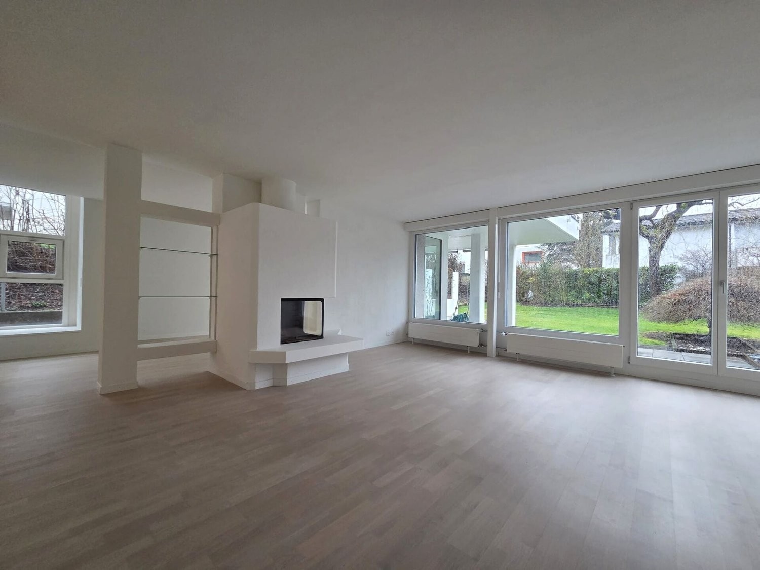 Einladender, lichtdurchfluteter und grosszügiger Wohn- und Essbereich, ergänzt durch ein schönes Cheminée