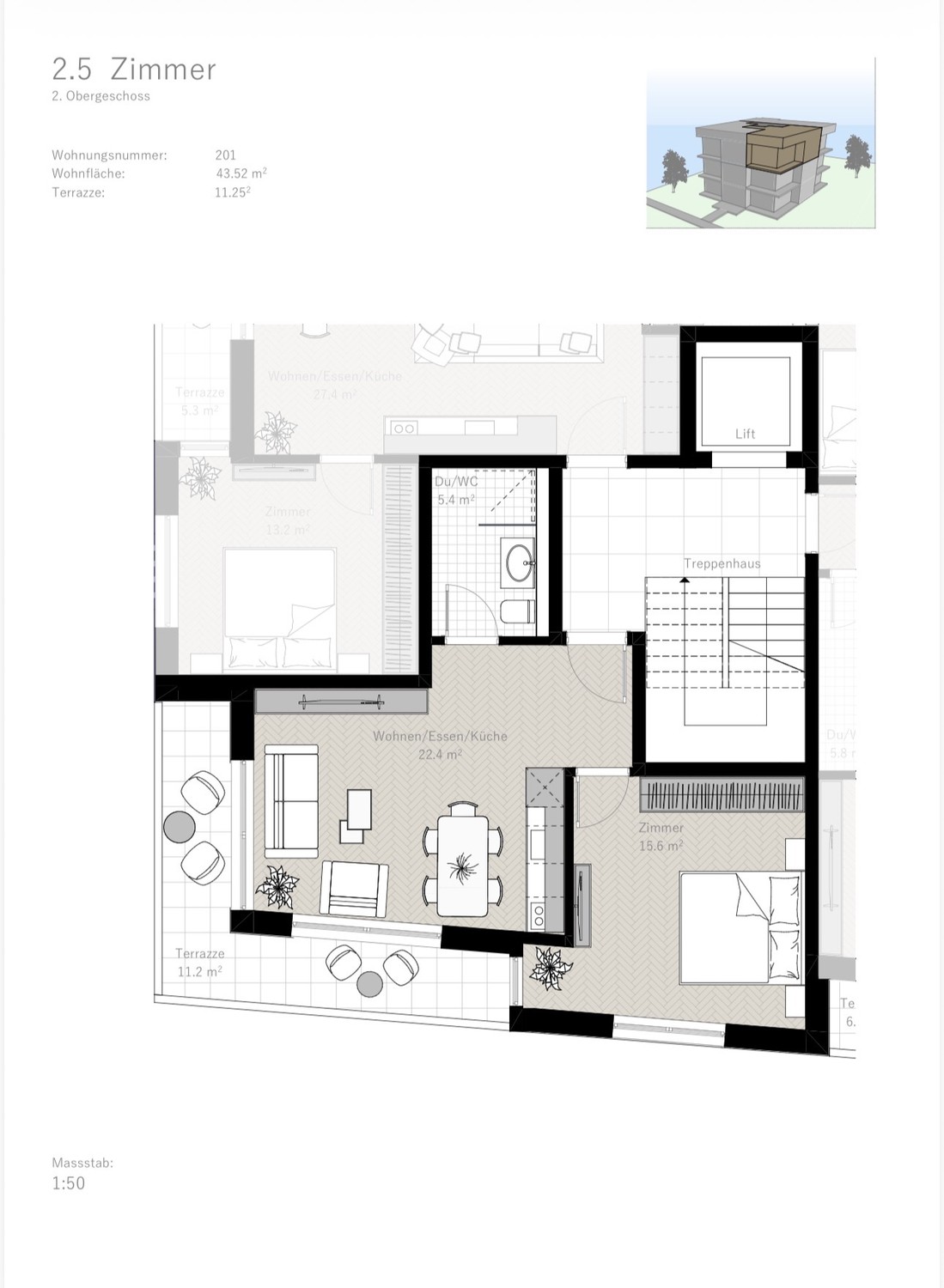 Diese stilvolle 2.5-Zimmer-Wohnung im Erstbezug überzeugt mit modernem Design, hochwertigem Innenausbau und einer grosszügigen Terrasse. Auf 43.5 m² Wohnfläche erwartet Sie ein durchdachter Grundriss mit viel Licht und angenehmem Wohnkomfort.