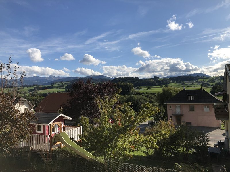 Limmeuble se trouve après larrêt de bus à droite, cest limmeuble après la banque Raiffeisen