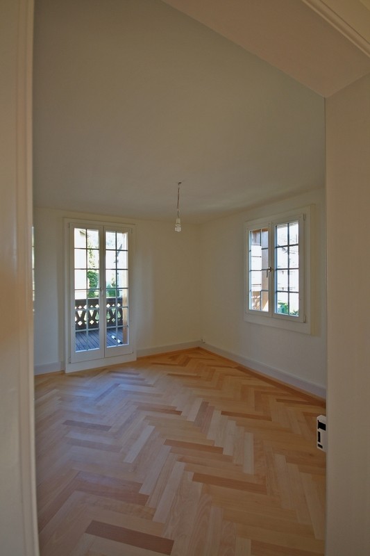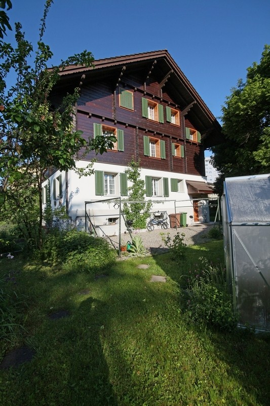 Die Wohnung erstreckt sich über ein ganzes Stockwerk eines gepflegten Chalets und verbindet ruhiges Wohnen im Grünen mit dem Komfort einer modern gestalteten Stadtwohnung. Klare Linien, viel Licht und Pflanzen prägen die minimalistische Einrichtung. Ess- und Wohnzimmer werden mitgenutzt.