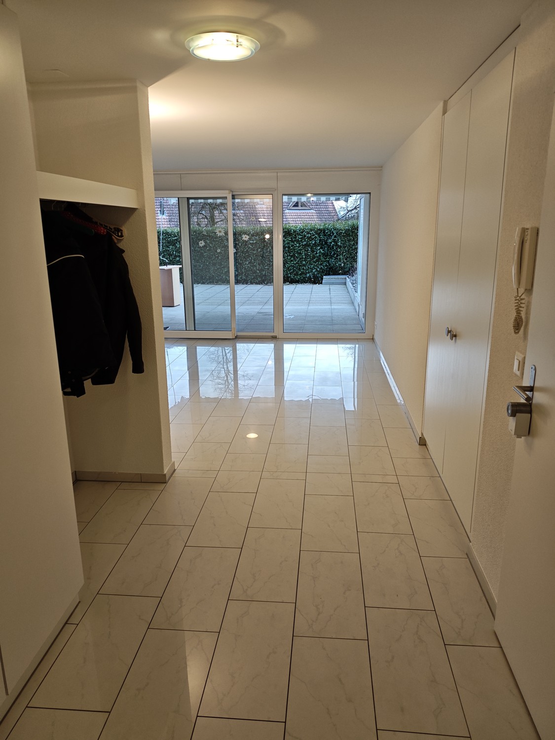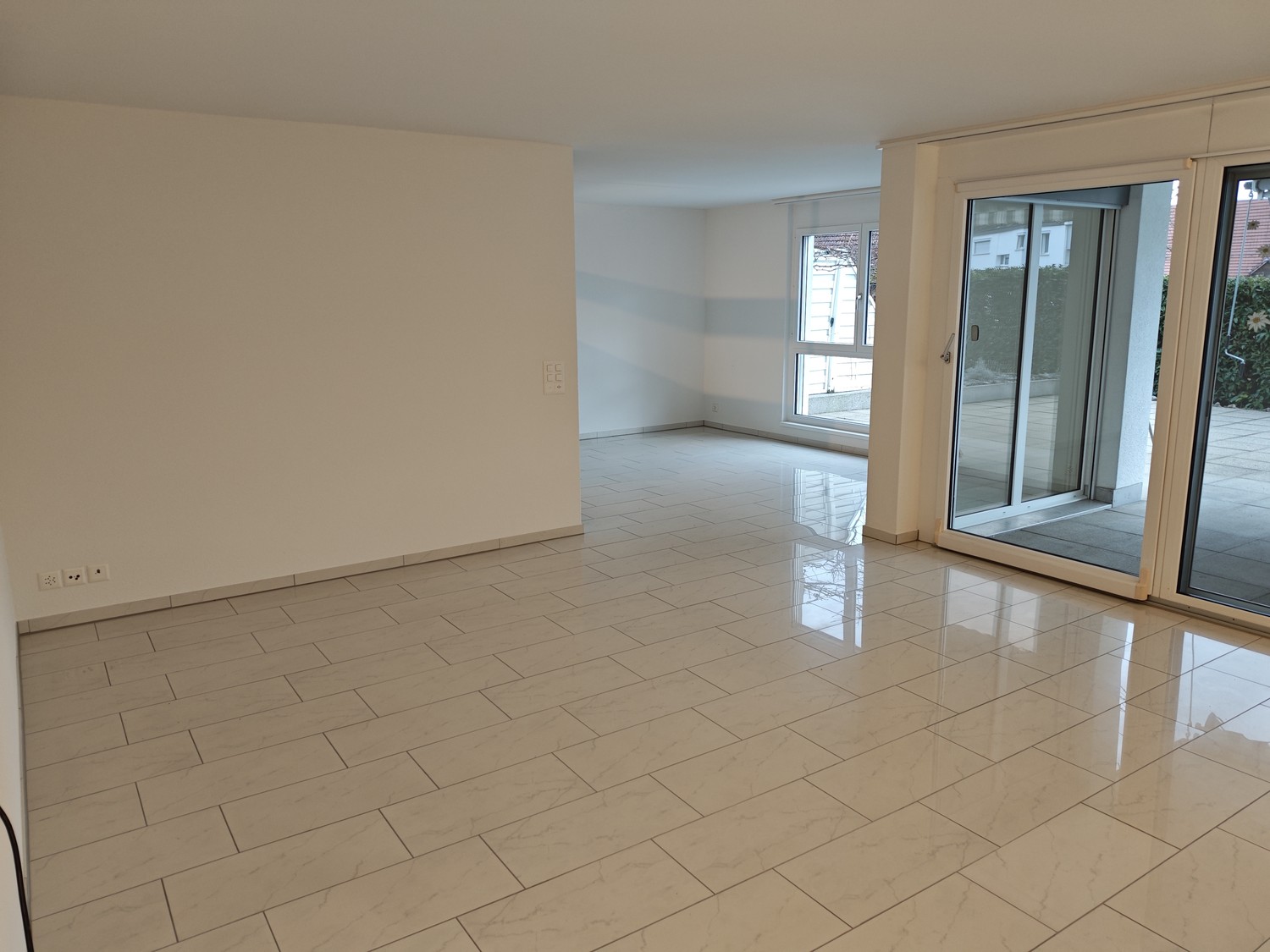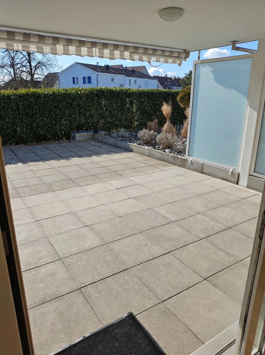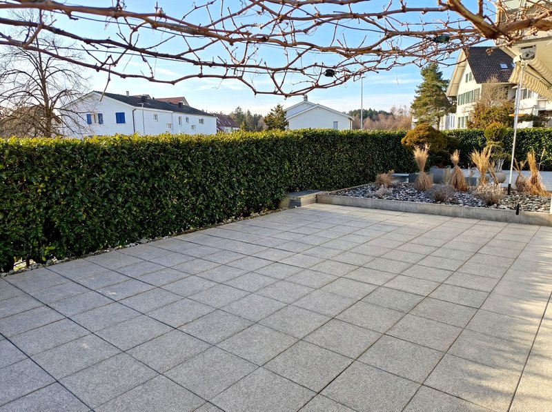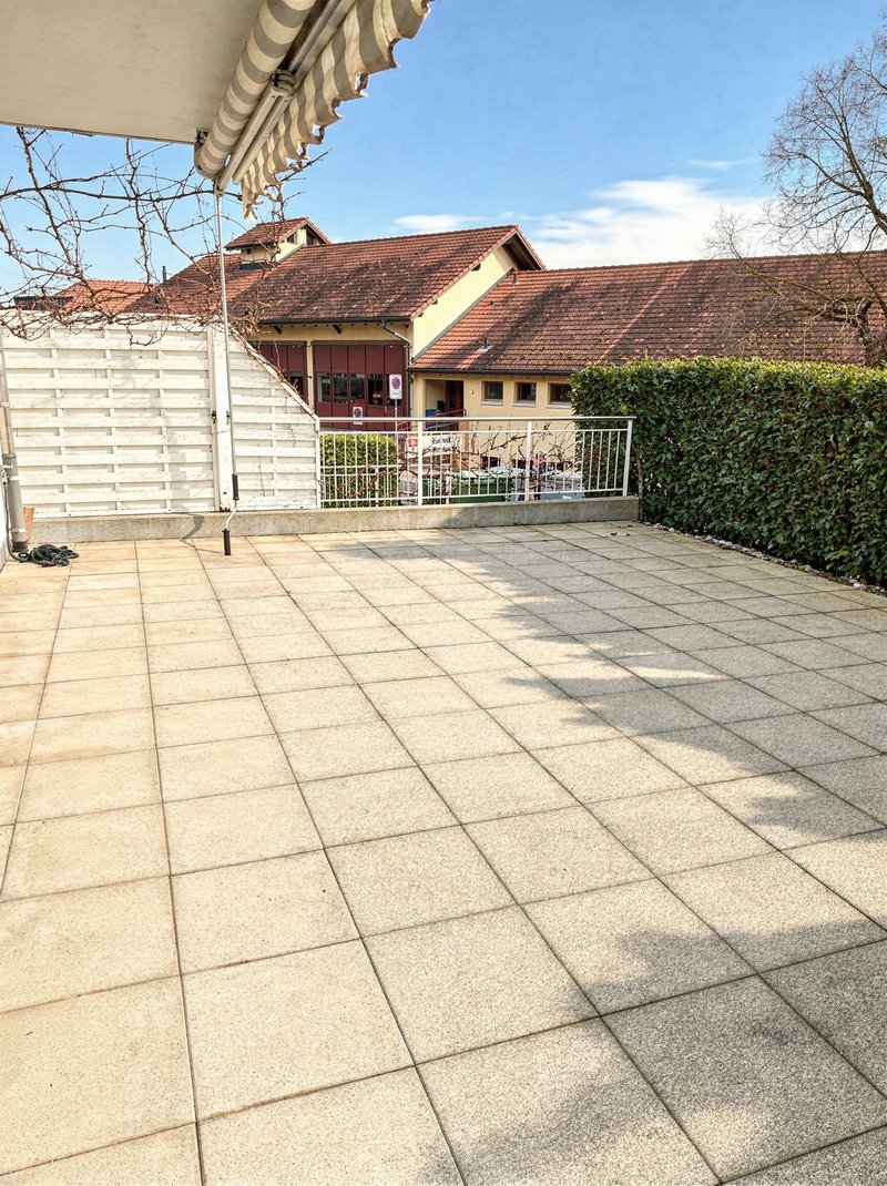 Die Terrasse (ca. 63 m²) bietet viel Platz für Erholung, Gartenmöbel oder Familienzeit. Die Reinigung und Versiegelung erfolgt im Frühling 2026.