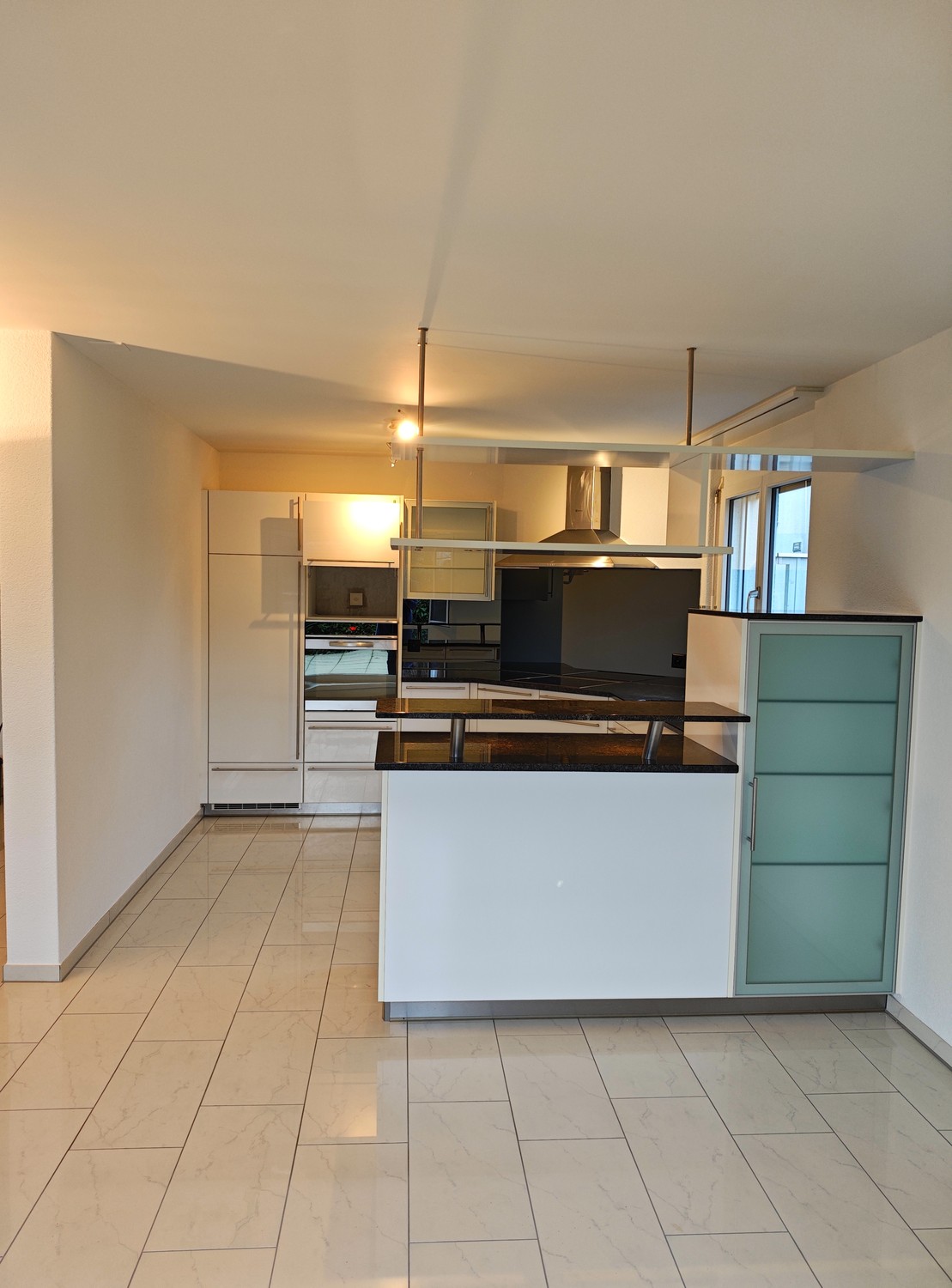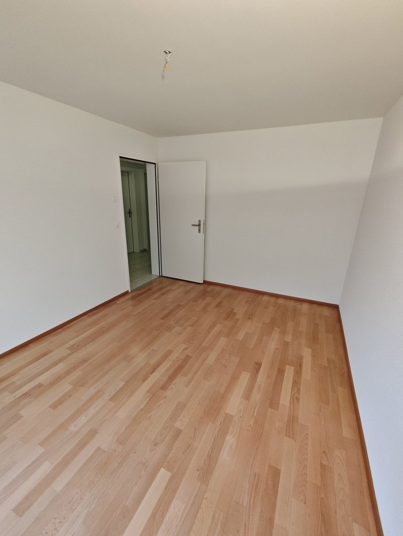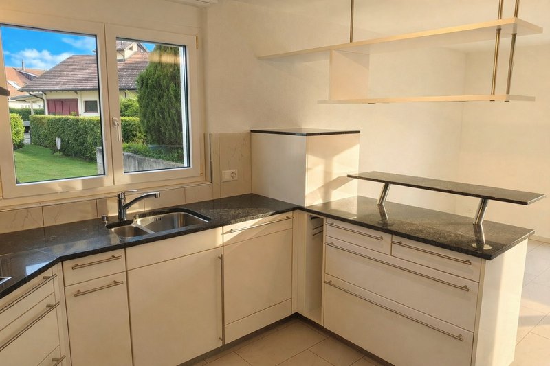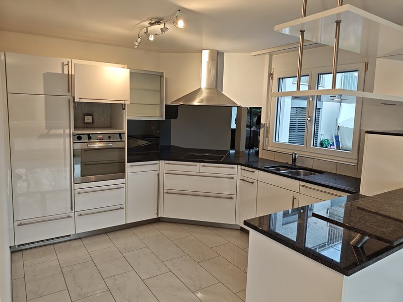 Die moderne, offene Küche ist hochwertig ausgestattet und fügt sich harmonisch in den Wohnbereich ein. Drei grosszügige Zimmer (12–15 m²) bieten vielseitige Nutzungsmöglichkeiten – als Schlafzimmer, Kinderzimmer oder Home‑Office. Das Entrée mit praktischen Einbauschränken sorgt für einen repräsentativen Empfang und viel Stauraum.