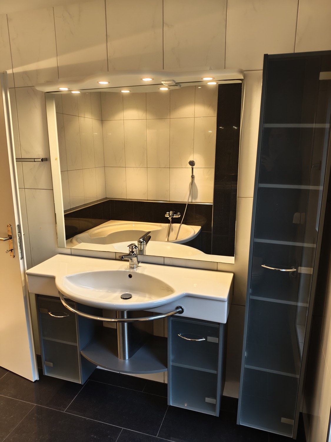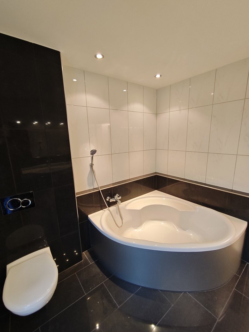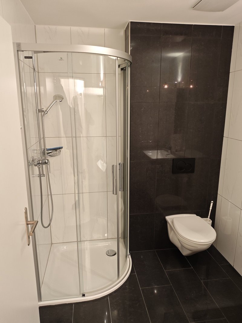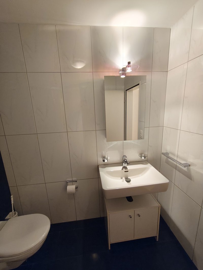 Die Wohnung verfügt über zwei Badezimmer: ein Hauptbad mit Eckbadewanne (inkl. Duschmöglichkeit) sowie ein separates Gäste‑Bad mit Dusche, Lavabo und WC (2025 erneuert).