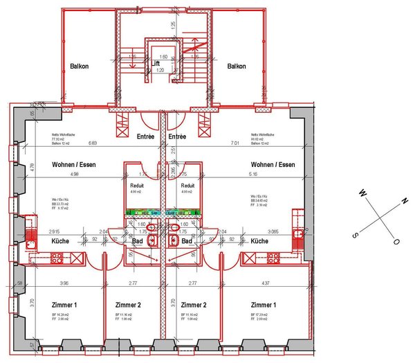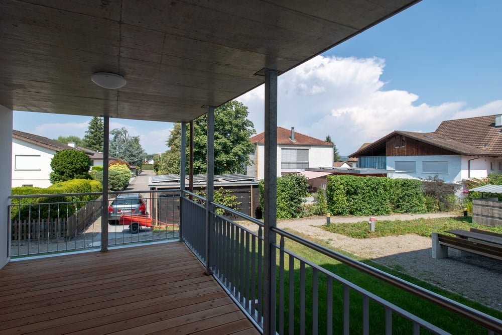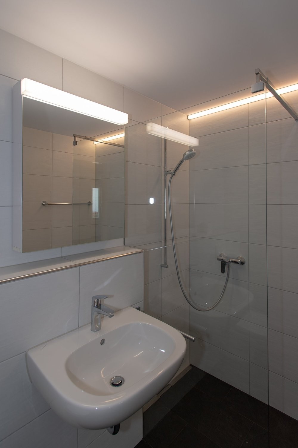 Durch den Lift und die grosszügigen Duschen sind die Wohnungen ebenfalls für Personen mit Rollstuhl oder Gehilfen geeignet. Der Balkon misst rund 12 m2, zur Wohnung gehört ebenfalls ein grosszügiges Kellerabteil.