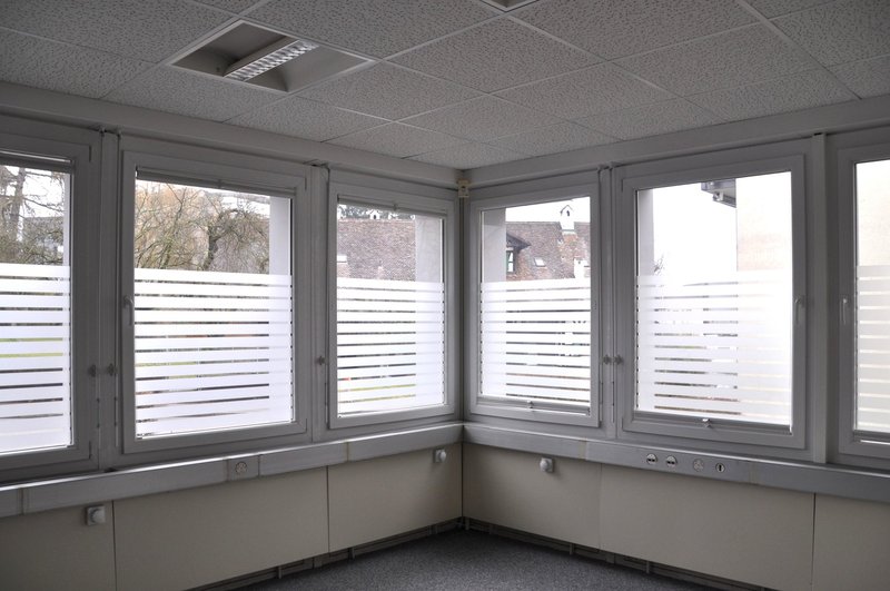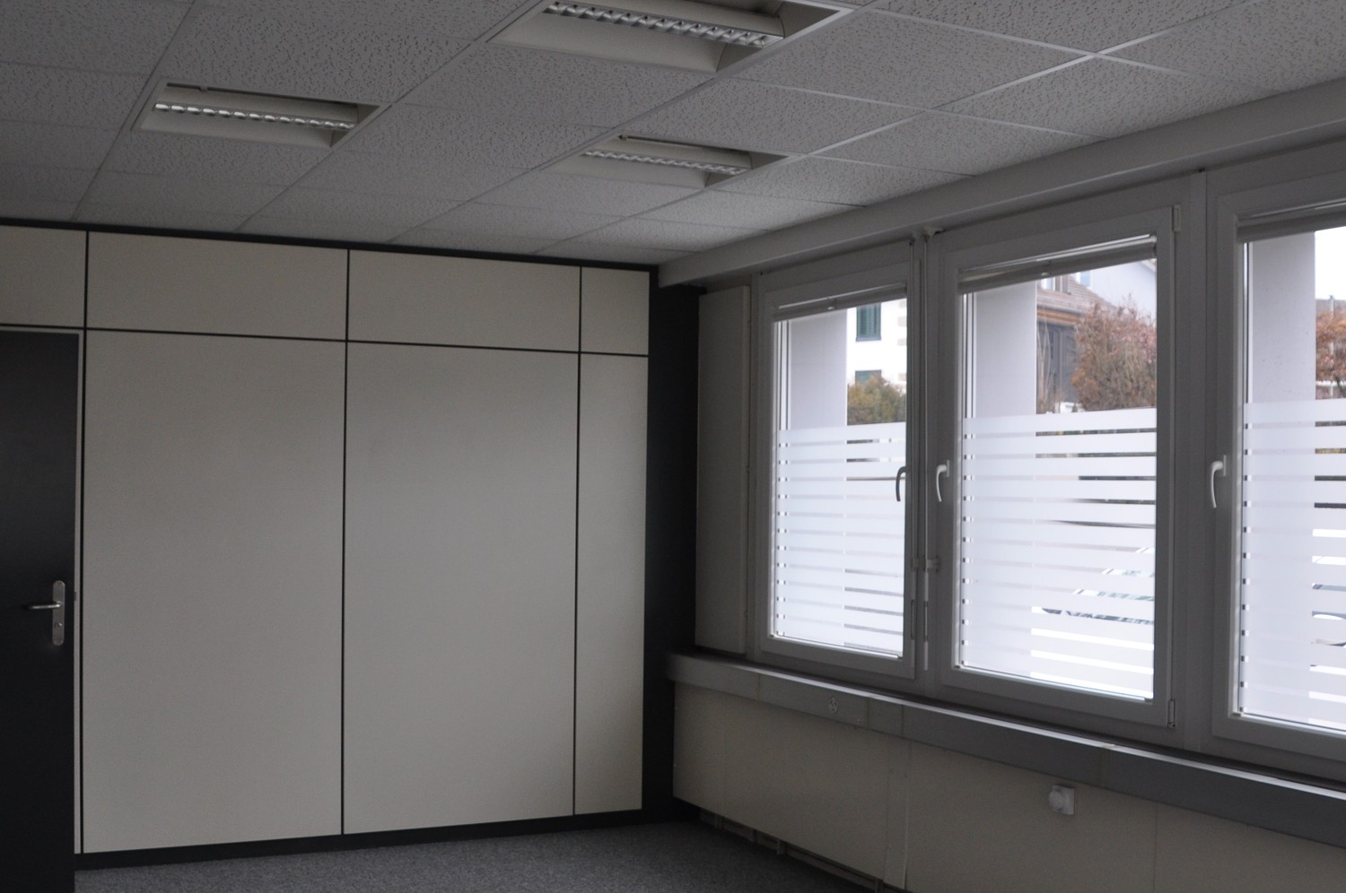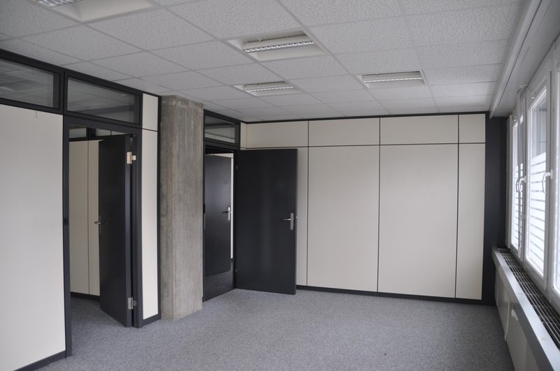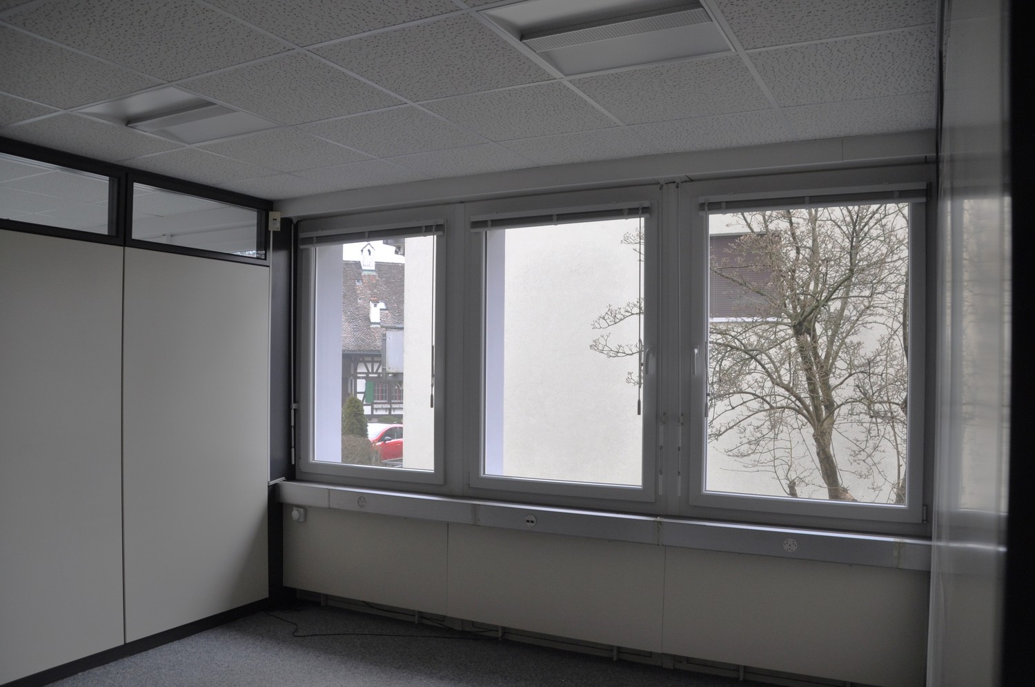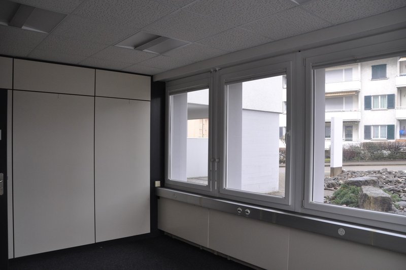 Der Eingang ist ebenerdig und rollstuhlgerecht gestaltet. Die schwellenlosen Büroräume sind bereits ausgebaut und bieten eine solide Basis, können jedoch individuell angepasst und nach Ihren Wünschen renoviert werden. Die grosszügige Fensterfront sorgt für lichtdurchflutete Räume und verleiht dem Objekt ein helles, professionelles Ambiente. Auch der Bodenbelag kann bei Bedarf erneuert und Ihren Vorstellungen entsprechend gestaltet werden.