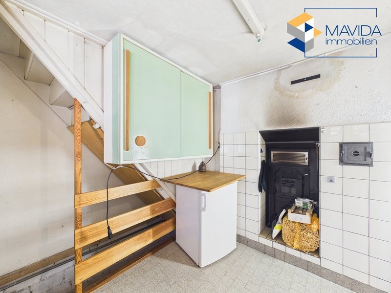 Im Erdgeschoss empfängt Sie ein gemütlicher Wohnbereich mit Holzofen (eingefeuert wird in der Küche), der in der kühleren Jahreszeit für eine besonders stimmungsvolle Wärme sorgt (die Wärme wird auch in das obere Stockwerk verteilt mittels Warmluftkanal). Die Raumhöhen sind teilweise etwas niedrig – insbesondere im Bereich der Treppe – was dem Haus seinen unverwechselbaren Altbau-Charme verleiht und zu seiner heimeligen Ausstrahlung beiträgt.
