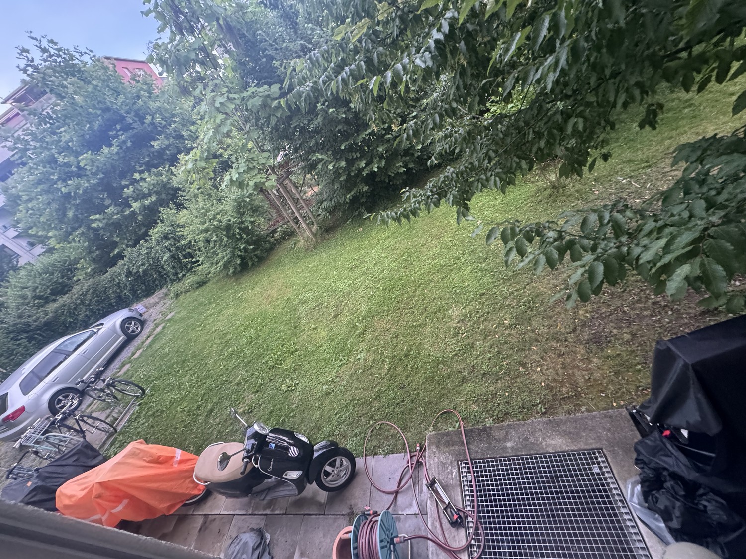 -Fahrradkeller und kleiner Gartenbereich hinter dem Haus