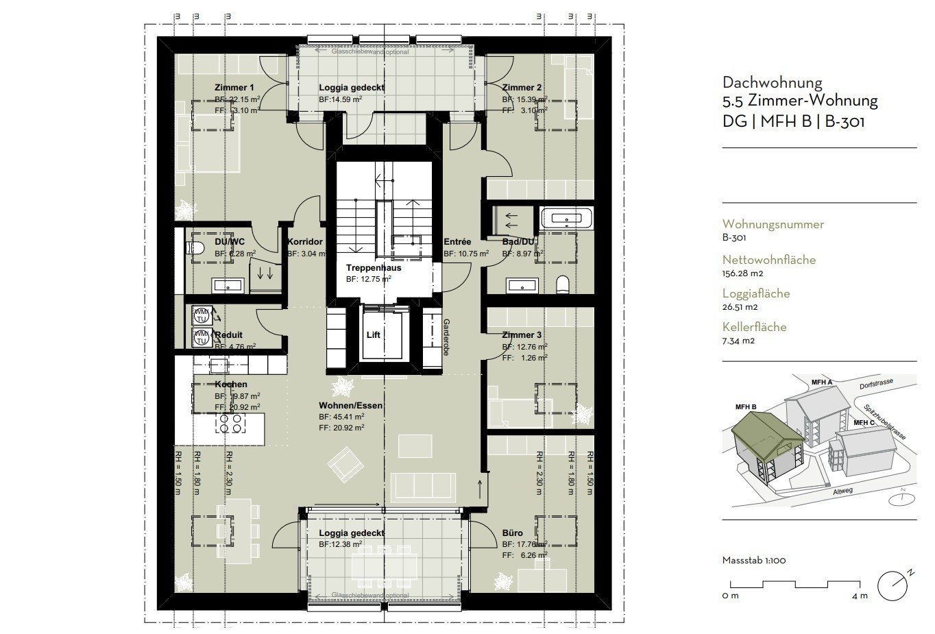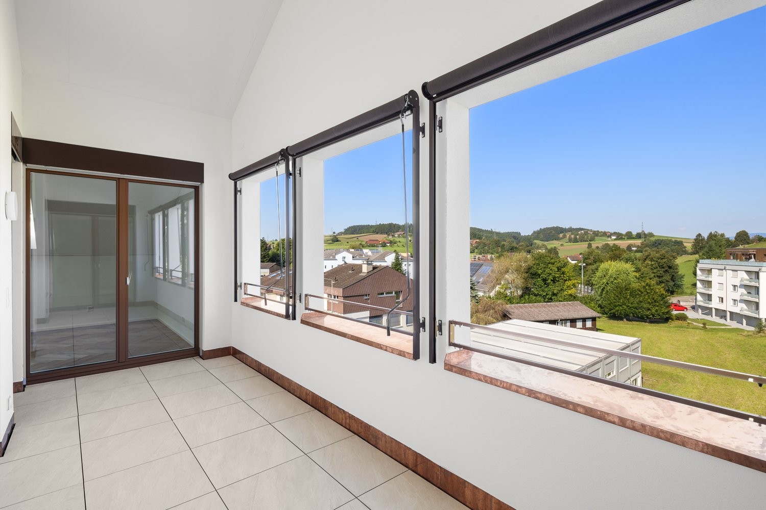 Diese moderne 5.5-Zimmer-Dachwohnung im Erstbezug vereint höchsten Wohnkomfort mit durchdachter Architektur und stilvollem Design. Grosse Fensterfronten sorgen für lichtdurchflutete Räume und ein offenes Wohngefühl. Der grosszügige Wohn- und Essbereich mit direktem Zugang zur Loggia lädt zum Verweilen ein - ob beim Morgenkaffee mit Aussicht oder beim entspannten Feierabend.