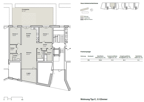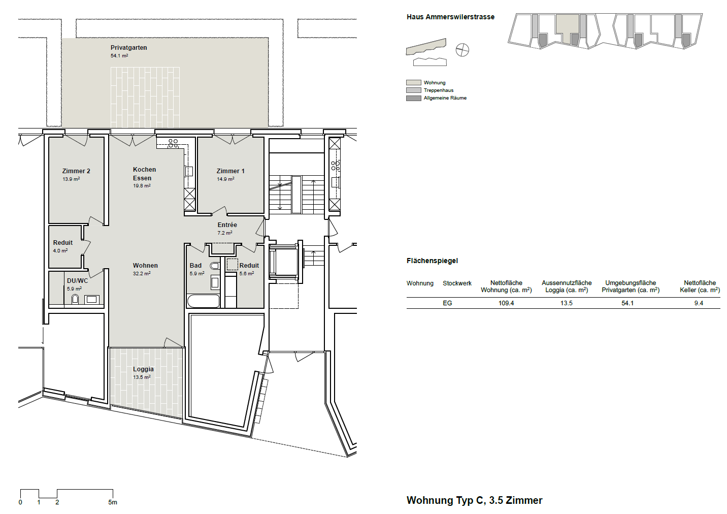 Erdgeschosswohnung mit zusätzlich ca. 50 m2 privatem Garten und einer Loggia