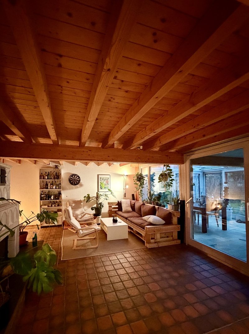 Gemeinsam mit vier anderen Mitbewohnern bewohnst du ein 6.5 Zimmer Haus. Lukas (37) ist Ingenieur, der gerne Sport treibt und viel am Reisen und das Leben am Geniessen ist. Michele (34) ist Architekt, singt im Chor und spielt Fussball in der Freizeit. Florian (27) studiert Umweltingenieurwesen an der ZHAW, macht gerne Sport, Game auch ab und zu und kümmert sich gerne um den Gemüsegarten, Cedi (25) studiert Umweltingenieurwesen an der ZHAW, in seiner Freizeit bouldert er gerne und widmet sich der Fotografie.