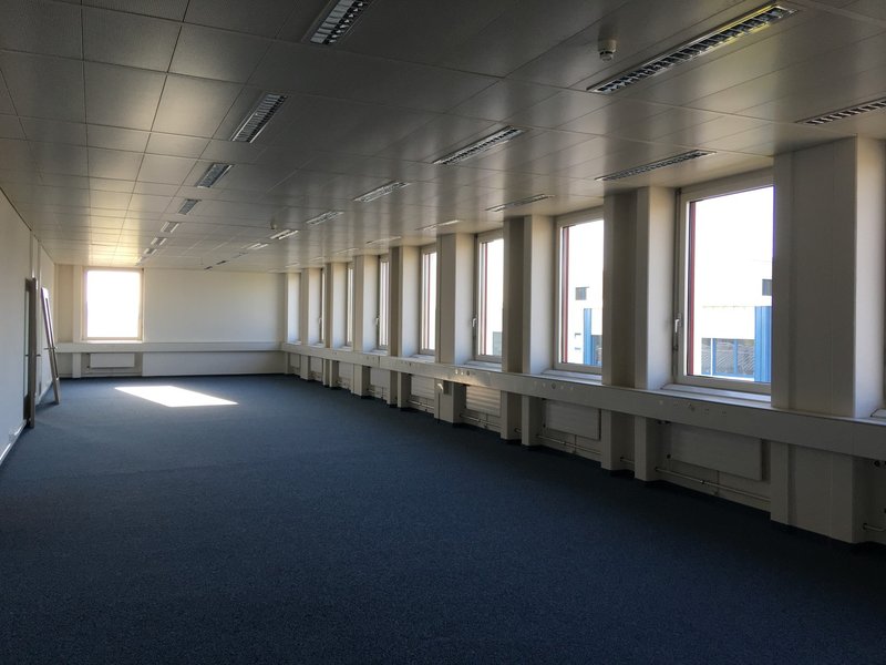 Der Raum ist mit Teppichboden ausgestattet und verfügt über einen Brüstungskanal. Elektro- und EDV-Anschlüsse sind ebenfalls vorhanden.