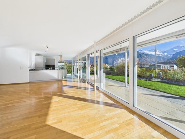 Diese stilvolle Wohnung in Unterseen überzeugt durch eine grosszügige Raumaufteilung und lichtdurchflutete Zimmer - der perfekte Rückzugsort für alle Naturliebhaber. Der moderne, offen gestaltete Wohn- und Essbereich schafft ein gemütliches Ambiente, während der sonnige Garten entspannte Stunden mit Blick auf die majestätische Alpenkulisse verspricht. Die ruhige Lage in einem gepflegten Wohnquartier rundet dieses attraktive Angebot ab. Ideal für alle, die Wohnen mit Lebensqualität verbinden möchten.