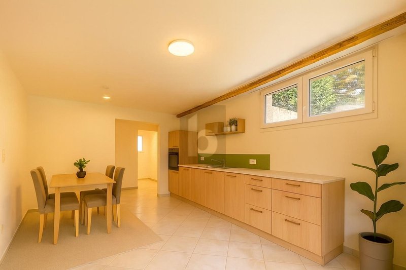 Cet appartement de 3.5 pièces fraîchement rénové convainc par ses pièces de vie généreuses et inondées de lumière ainsi que par son agréable coin salon pour les barbecues et les soirées de détente. La cuisine-séjour moderne est équipée de manière haut de gamme et offre beaucoup de place pour cuisiner et profiter de la vie. Deux chambres à coucher - dont une idéale comme bureau - ainsi qu'un débarras pratique avec économat assurent le confort et l'ordre. L'appartement est calme mais facile d'accès, avec une place de parking extérieure possible et un vestiaire directement à l'entrée. La douche, les toilettes et le lavabo sont fonctionnels et spacieux. Un magnifique quartier résidentiel complète l'offre.