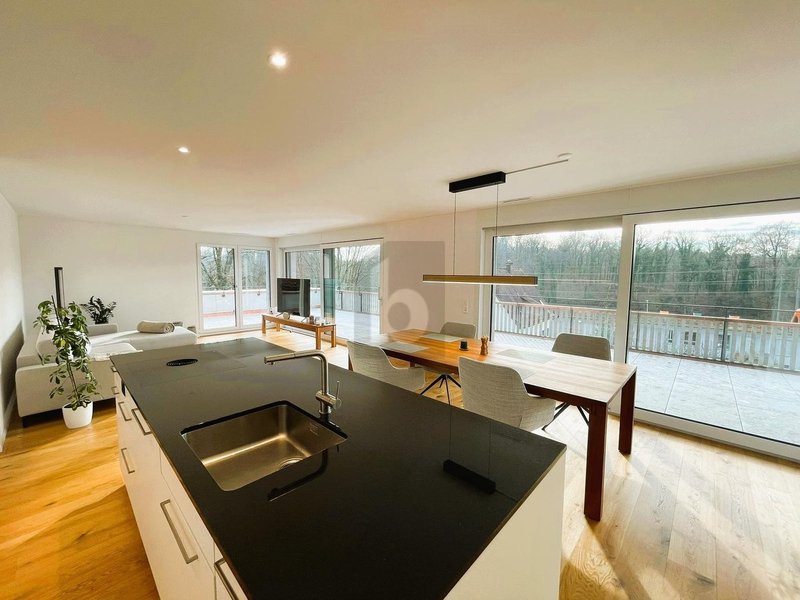 Die moderne Attika bietet viel Platz und ein lichtdurchflutetes Ambiente. Die grosse Terrasse mit 125 m² und Blick auf das Schloss Wildegg lädt zum Entspannen ein. Mit zwei modernen Badezimmern, einem eigenen Waschturm und zwei Einstellhallenplätze (1x kostenlos / 1x CHF 140.- /Monat) ist diese Immobilie perfekt für Paare oder kleine Familien. Die ruhige Lage und der hohe Ausbaustandard machen dieses Zuhause zu einem Ort zum Wohlfühlen. Keine Haustiere erlaubt. Bitte beachten: Die Postadresse ist Wildegg, die Liegenschaft liegt in Niederlenz.