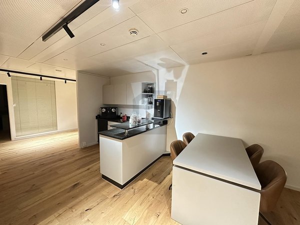 Die geräumige Bürofläche in Dättwil AG ist ideal für Unternehmen, die nach einer zentralen Lage mit exzellenter Verkehrsanbindung suchen. Der hochwertige Holzboden und die frisch gestrichenen Wände sorgen für eine moderne Atmosphäre. Grosse Fenster und eine Deckenhöhe von 2.6 m schaffen eine helle und angenehme Arbeitsumgebung. Die offene moderne Küche ist perfekt für Pausen. Ein Lift und barrierefreier Zugang bieten Komfort. Tiefgaragen- und Aussenparkplätze sind vorhanden für Mitarbeiter und Besucher.