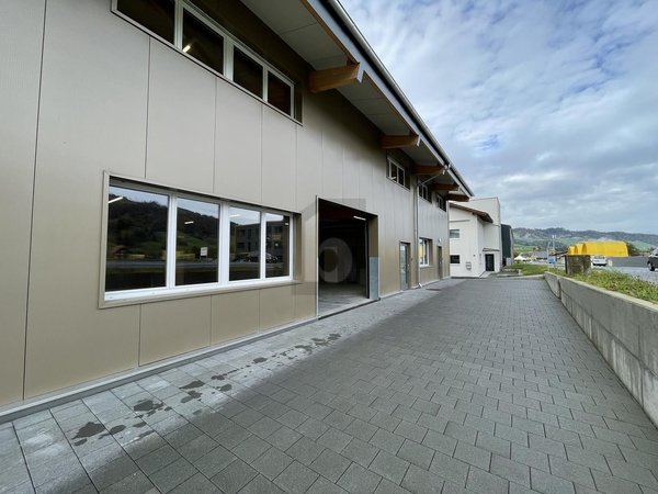 Zentral an der Hauptstrasse liegt die einmalige Gewerbe-Immobilie. Sie befinden sich alleine im Gebäude und der Vorplatz steht Ihnen zur alleinigen Benützung. Das Objekt bekommt bei Bedarf noch einen Warenlift für die Beförderung der Waren in das Obergeschoss. Sie bestimmen mit, mit welchen Materialien die Halle und das Büro ausgebaut werden. Der Mietzins bezieht sich auf den Rohbau und kann je nach Ausbau variieren. Die Nebenkosten werden je nach Nutzung noch ermittelt und sind im Mietzins nicht enthalten. Die Nutzlaster des Holzbodens im OG beträgt 400kg/m2. Die Nutzlast der Hallen-Bodenplatte im gesamten Erdgeschoss beträgt 800kg/m2.