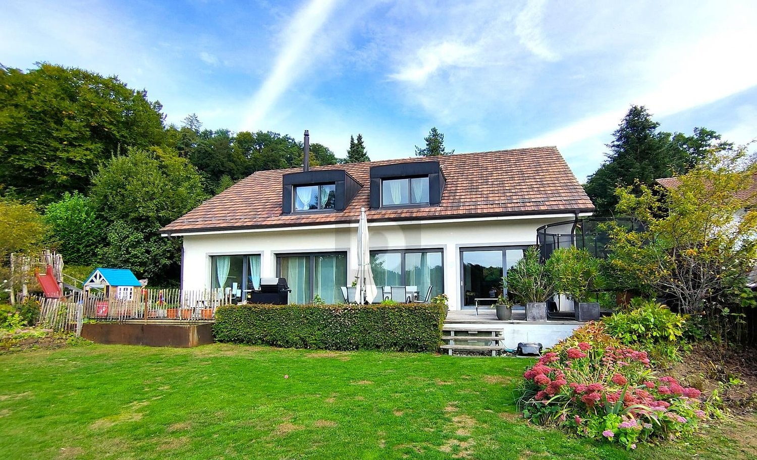 Wir verkaufen dieses äusserst grosszügig konzipierte Einfamilienhaus im beliebten Dorf Wil ZH. Das Haus ist nach Süd-Westen ausgerichtet, liegt erhöht am Rande des Dorfes, mit unverbaubarer Weitsicht. Sieben Schlafzimmer, drei Badezimmer und diverse Nebenräume bieten viel Platz für eine grosse Familie. Das Elternschlafzimmer ist mit Ankleideraum und Bad en Suite mit Sauna und Whirlwanne ausgestattet. Die Terrasse (77 m²) verläuft über die ganze Frontseite des Hauses mit direktem Übergang in den Garten. Die ebene Rasenfläche lädt zum Spielen ein. Die Einstellhalle bietet Platz für 6 Fahrzeuge plus Stauraum. Viele Extras machen das Angebot komplett.