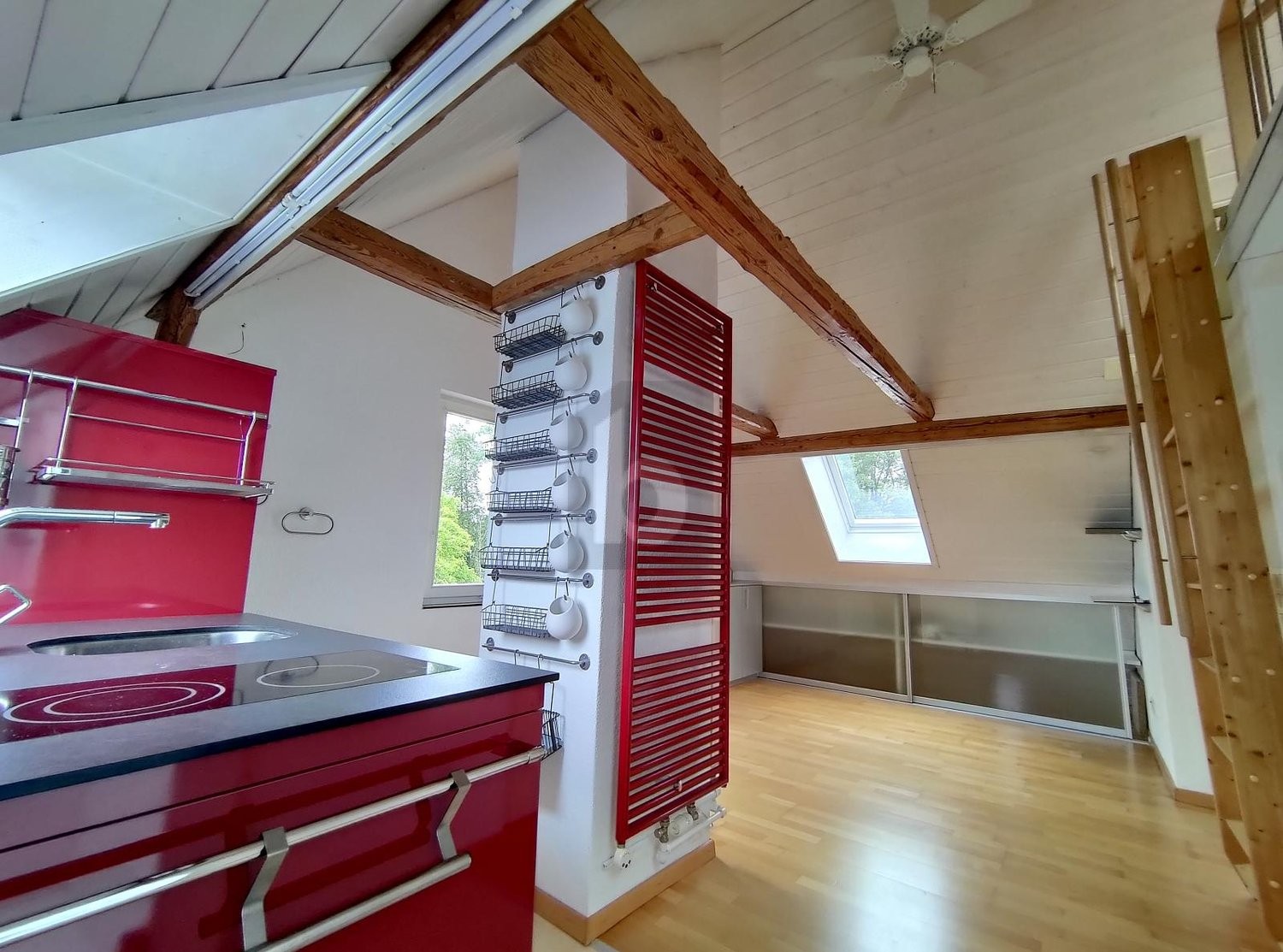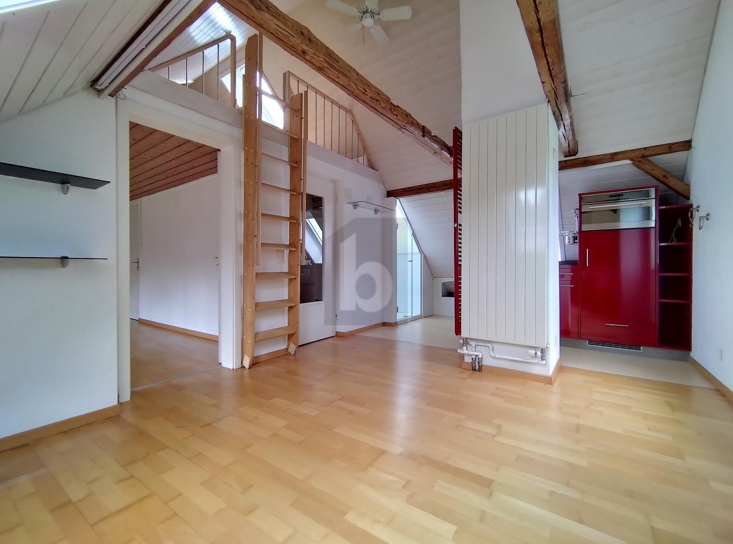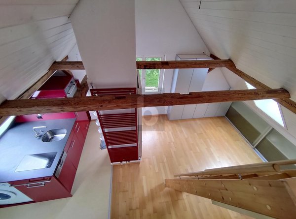 Diese Dachwohnung bietet Platz und viel Stauraum für individuelle Bedürfnisse. Durch die hohe Decke und den vielen Fenstern ist die Wohnung hell und lichtdurchflutet. Die gute Raumaufteilung ist ein weiteres Plus dieser Dachwohnung. Der sonnige Gartensitzplatz steht den Vermietern zu der Mitbenutzung zur Verfügung. Eine Garage für CHF 150.- oder ein Parkplatz für CHF 80.- kann dazu gemietet werden.