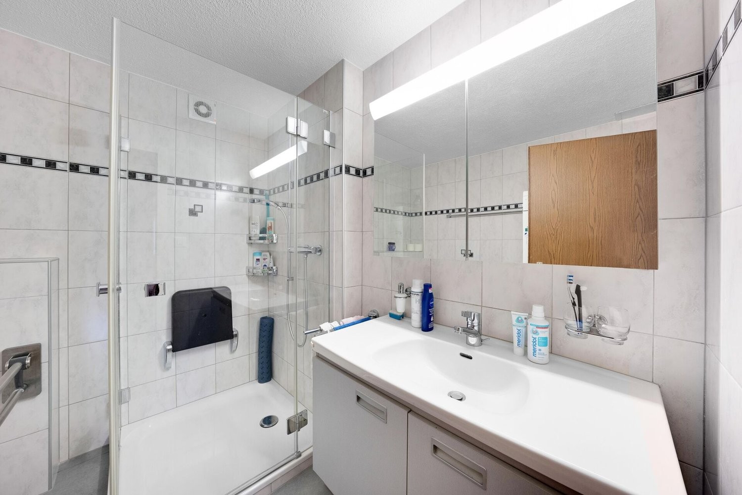 Zwei Sanitärbereiche, davon einmal mit Dusche und Waschturm