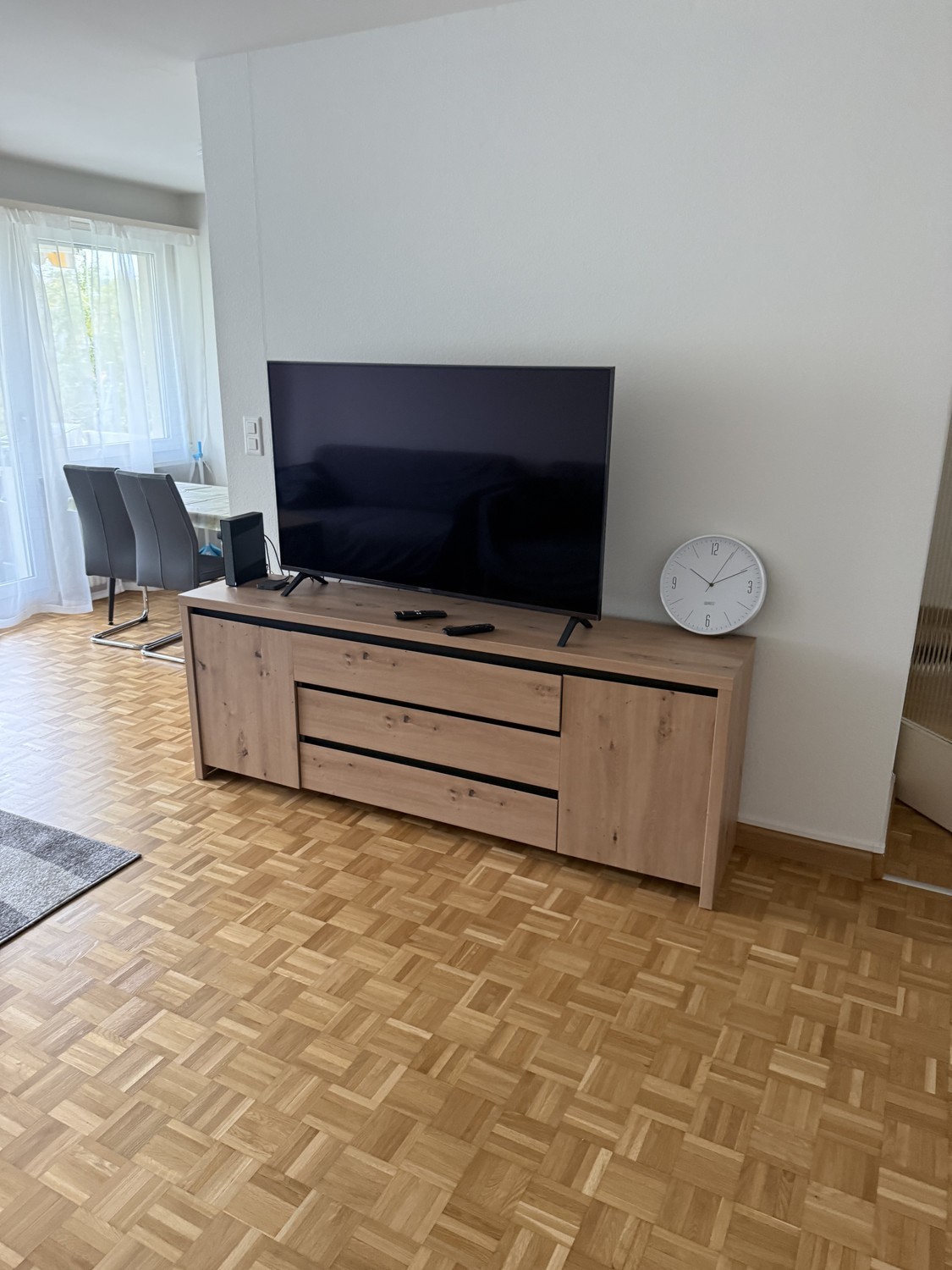 Der schöne Parkettboden sorgt für eine warme und wohnliche Atmosphäre.