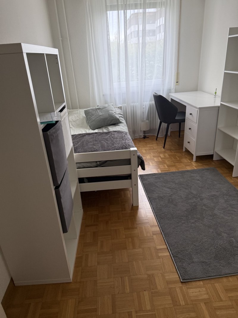 Wir vermieten ein ca. 13m² grosses Zimmer in unserer 4-Zimmer-Wohnung an der Augsterheglistrasse 21 in Pratteln. Das Zimmer ist bereits voll möbliert und wartet nur darauf, dass du einziehst!